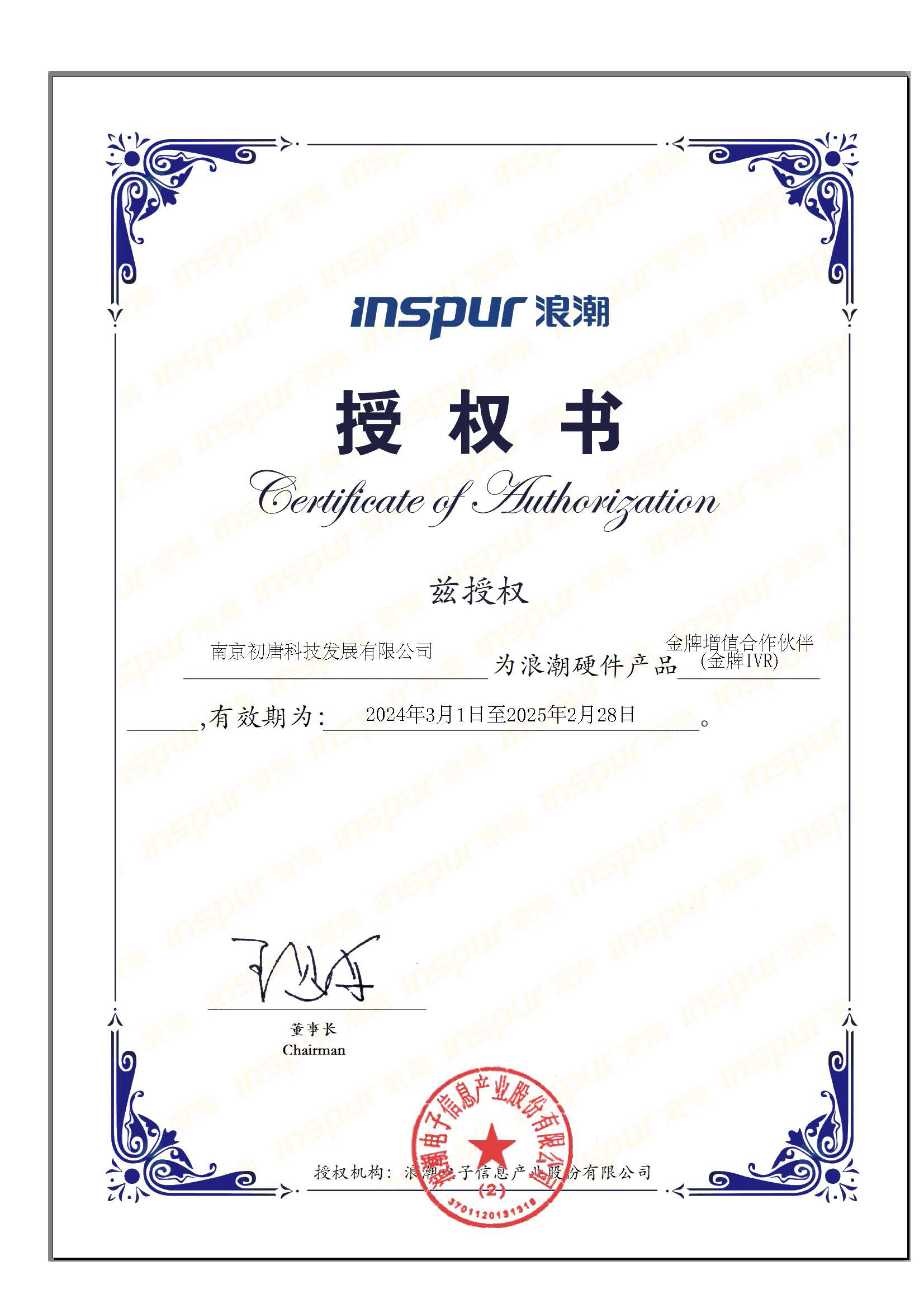 此次荣获inspur浪潮金牌增值凯发棋牌的合作伙伴认证,不仅为南京初唐科技带来了更加广阔的发展空间和机遇,更将为其在信息技术领域内的领先地位奠定更加坚实的基础。我们期待着南京初唐科技在未来的发展中能够取得更加辉煌的成就!